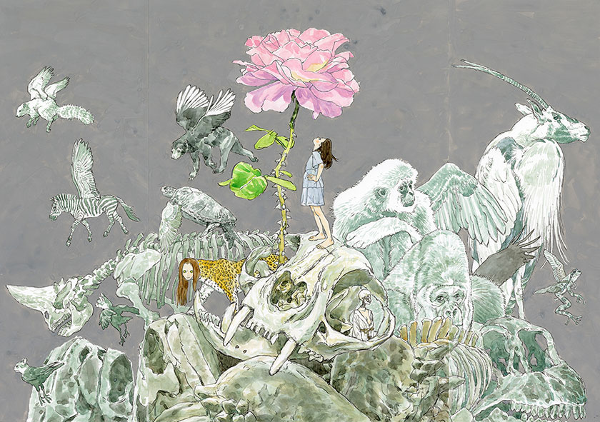 公式トートバッグは、画家・アーティストの五十嵐大介さんが表現したキービジュアルをプリント。「薔薇はどこに咲くのだろう」という五十嵐さんの問いから生まれた美しいキービジュアルを、シンプルで使いやすいトートバッグにデザインしています。