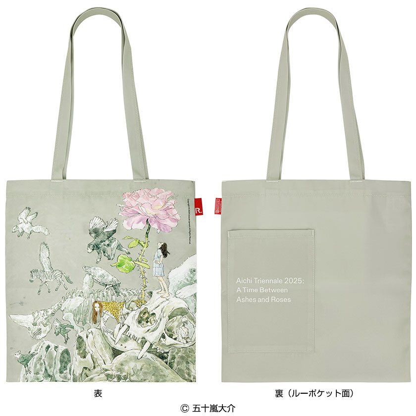 国際芸術祭「あいち2025」「灰と薔薇のあいまに」と、トートバッグ専門ブランドROOTOTE(ルートート)がコラボレーション。キービジュアルをプリントしたトートバッグを販売しています。