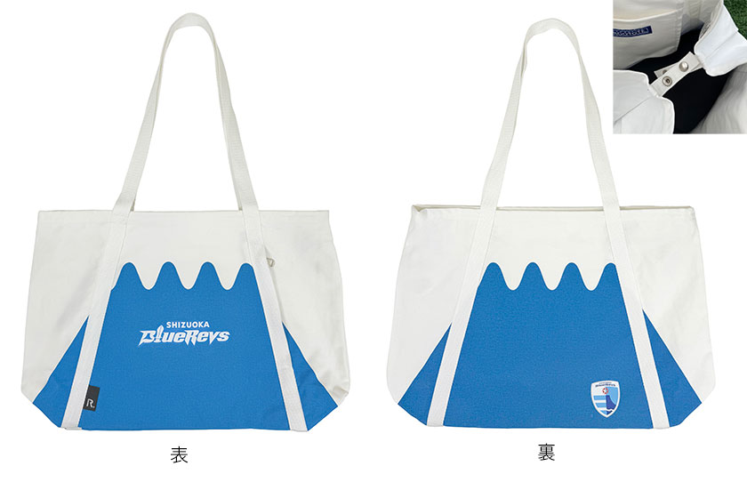 ラインアップには、軽量で収納力に優れた「フェザールー DELI」に、静岡ブルーレヴズのエンブレムの刺繍ワッペンをあしらったトートバッグや、コンパクトで持ち運びやすい、静岡ならではの富士山モチーフのサコッシュ型ミニトートなどを展開しています。