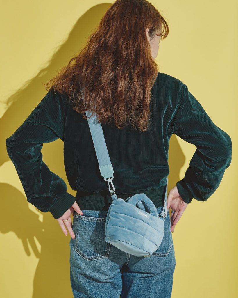 スマホやイヤホンなど、必要最低限のものを持ち歩くための小さなフェザールー。 ルーポケットはリップなどの小物収納に。 ショルダーベルト付き 2WAY仕様。