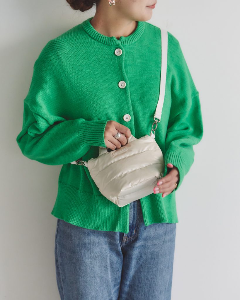 サブにもメインにも使えるサイズ感のデリ。長財布は立てても収納OK。 ふわふわの持ち心地で膝の上でもやさしくフィット。 ショルダーベルト付き 2WAY仕様。