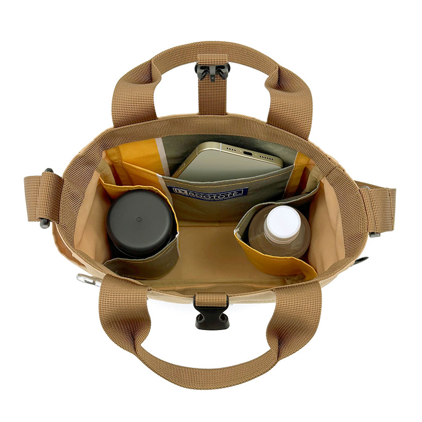 家族みんなで使えて、とても軽量。ウォーターボトル、スプレー、ウェットティッシュ、おやつ、マナー袋など、愛犬とのお散歩に必要な荷物を整理して収納できるトートバッグです。