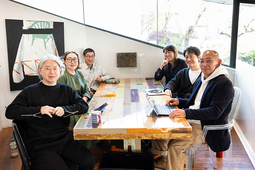 写真は左から、土井 康幸・小室 由美子(ホールセールス事業部)、神谷 富士雄、郡山 輝子(コミュニケーション部)、酒巻 克美(生産管理部)、荒井 良実(ルートートギャラリー事業部)
