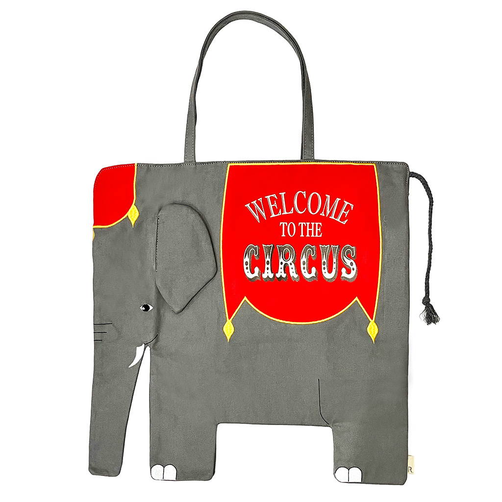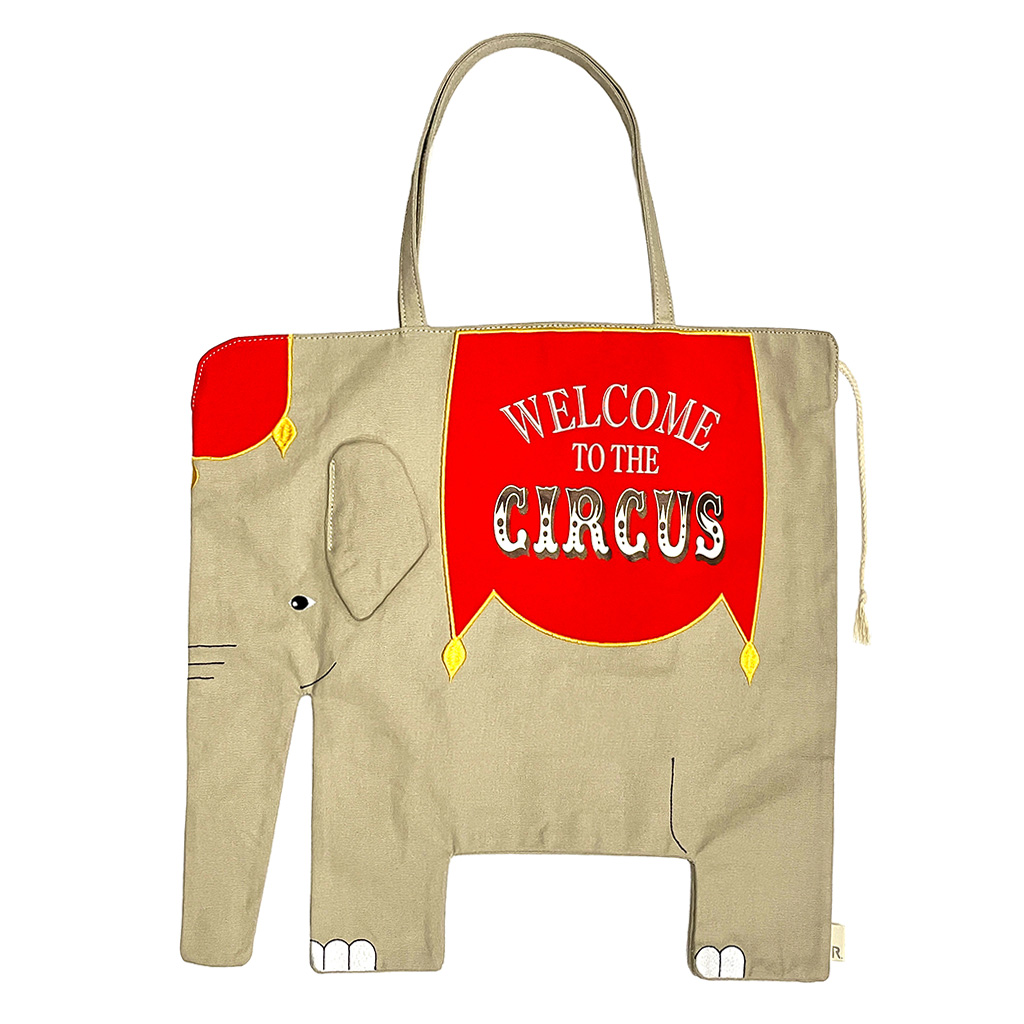 まず登場するのは、大きな体に優しい瞳が印象的な「ゾウさんトート」。今回の東京蚤の市で、デビューします!