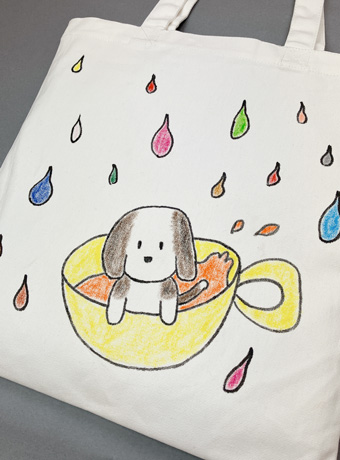 小さな犬は、そのしずくをカップの中で静かに受けとめています。