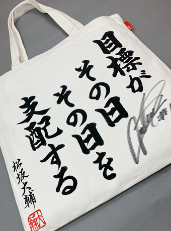 高校の時からずっと大切にしてきた言葉をトートバッグに込めました。